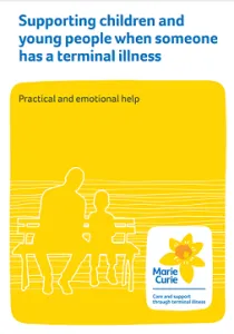 This booklet from Marie Curie is for any adult who is supporting a child or young person when someone close to them is living with a terminal illness. Whether you are a parent, another family member or close friend, we understand that it can feel difficult to know how to support children when someone is ill. Click here to view the resource